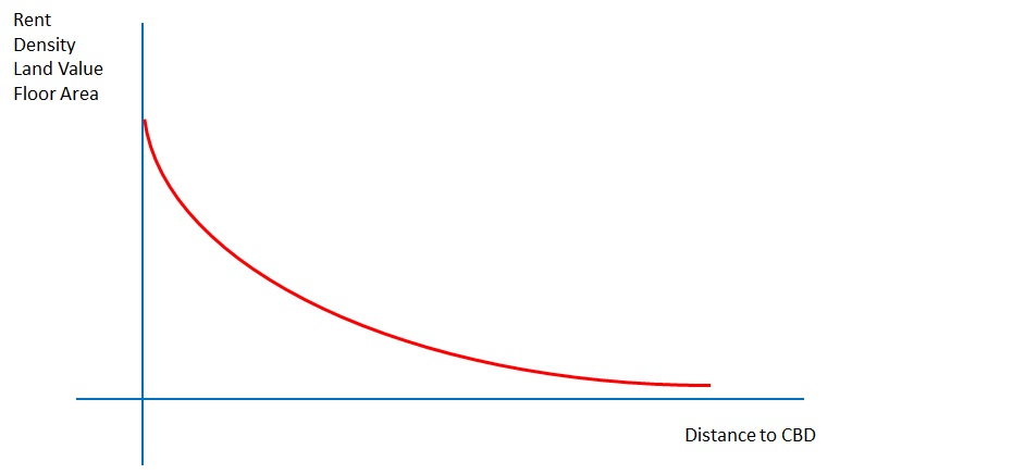 - The intensity of land use (or the intensity of capital use in realized buildings) decreases as we move away from the ground.